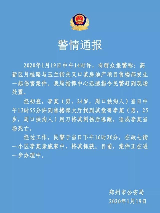 跟着安全郑州发布的警情通报,郑州高新区金科城置业参谋命案传言尘埃落定:行凶者与被害者是堂兄弟联系,是为私家寻仇。这让人不由唏嘘,一条鲜活的生命,就这样就义在不知为何的对立抵触下。